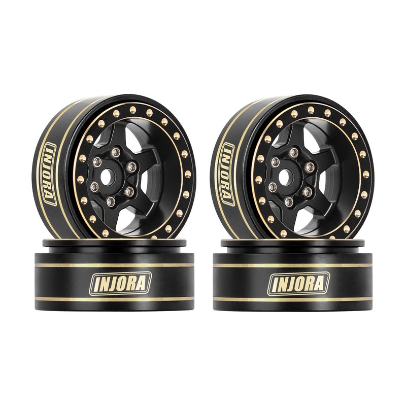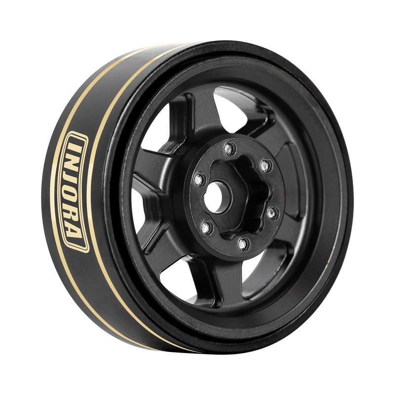 INJORA 1.0 Plus Brass Beadlock Wheel Rims 6-Spoke Wheels for TRX4M AX24 SCX24 FCX24 1/24 1/18 RC Crawler,42g/pcs (Black)