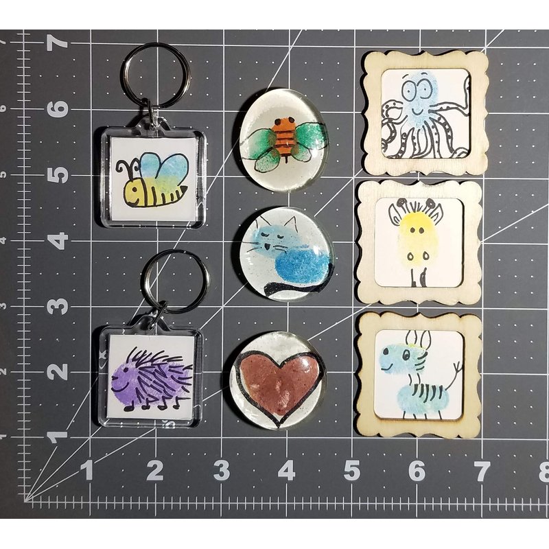 What better way to make unique gifts for loved ones than with your very own finger prints? This set includes enough supplies to make 2 reversible key-chains, 3 gemstone magnets, and 3 framed art pieces, making it perfect for holidays like Mother's Day and Father's Day. This set is perfect for children of all ages, and is especially great for new mothers. Toddler and infant fingerprints can easily be preserved using this kit, making this gift one that will be treasured for years to come.