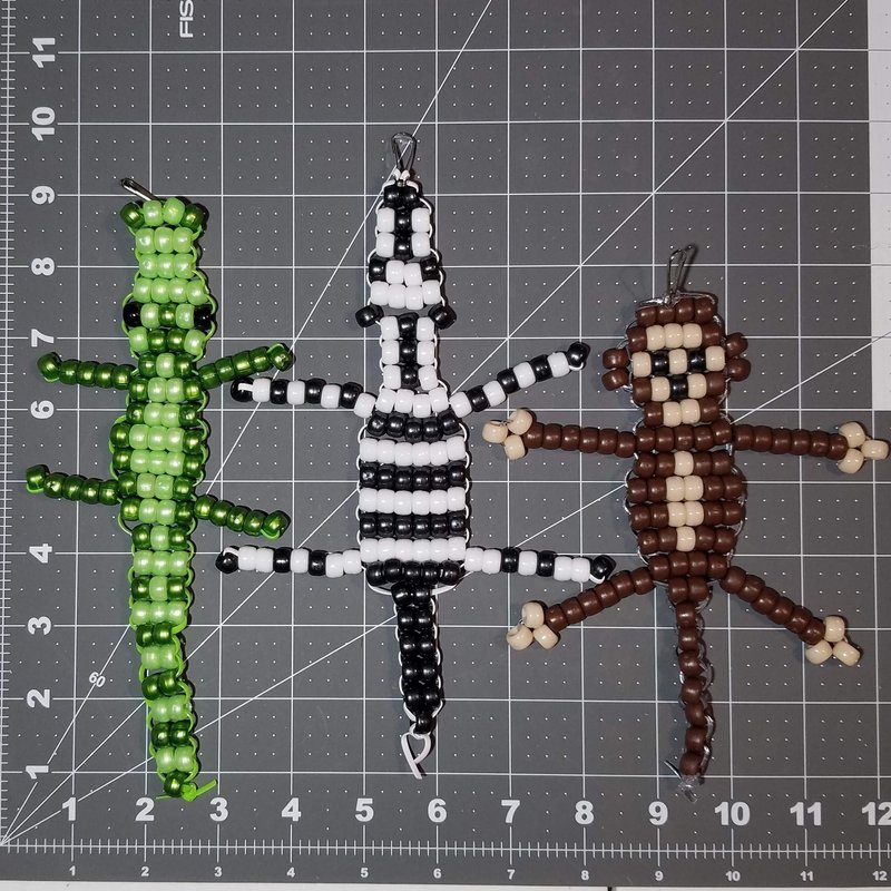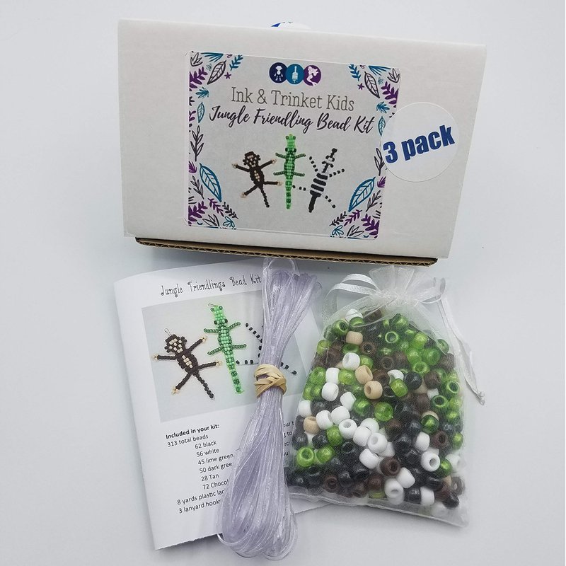 - Our jungle themed kit includes all the supplies needed to make 3 unique bead animal designs. The included step-by-step directions will guide you through the process of making a fun monkey keychain, a shimmering green alligator, and a simple zebra bead pet.