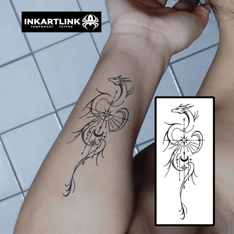 - Exotic products INKARTLINK temporary tattoo is not a simple tattoo sticker. It is different from the ordinary stickers we were familiar with when we were children. This product is waterproof, friction-resistant, and non-reflective. It is almost the same as a real tattoo and lasts up to 1-2 weeks. Our store provides a variety of Exquisite designs are available for customers to choose from, and we hope to satisfy all customers.