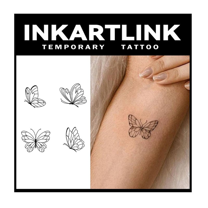 INKARTLINK Tattoo Tech, 2 Sheets Medium Semi Permanent Tattoo, Temporary Tattoos, Last 1-2 Weeks, Waterproof, Realistic Look, No Adhesive, No Reflection (Line Butterfly)