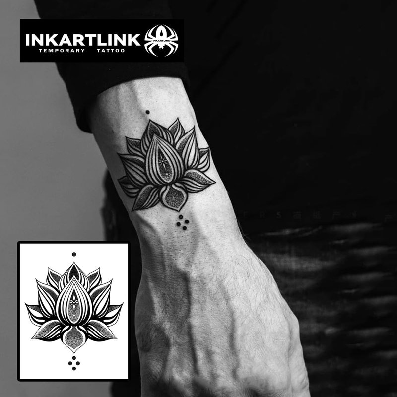 INKARTLINK Temporary Tattoos, Semi Permanent Tattoo Adult Art Design Waterproof Temp Tattoo Party Favors Tattoo Stickers Realistic Look, No Adhesive, Lasts 1-2 Weeks Black (Lotus Mandala)