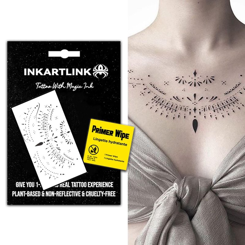 - Exotic products INKARTLINK temporary tattoo is not a simple tattoo sticker. It is different from the ordinary stickers we were familiar with when we were children. This product is waterproof, friction-resistant, and non-reflective. It is almost the same as a real tattoo and lasts up to 1-2 weeks. Our store provides a variety of Exquisite designs are available for customers to choose from, and we hope to satisfy all customers.