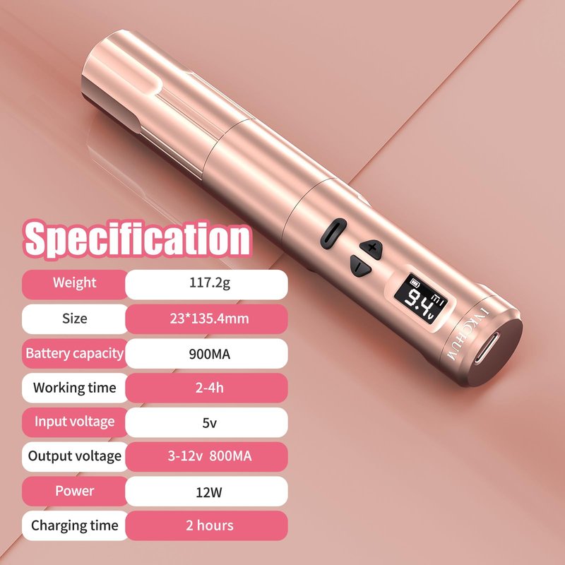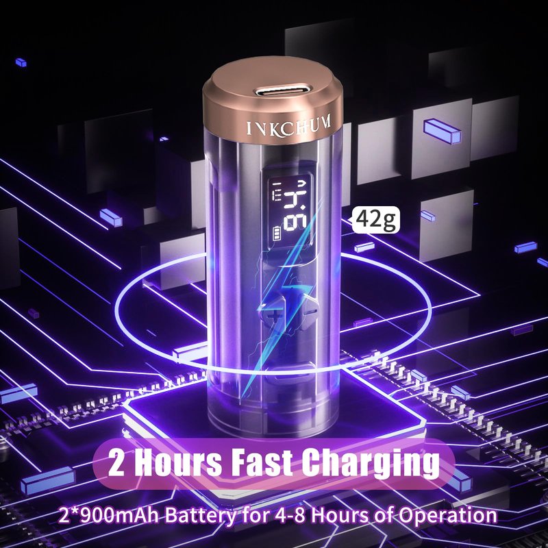 Technological Innovation: INKCHUM spent 1 year to develop the coreless motor that is most suitable for gun and its service life has increased by 4 times. 12V 10000Rpm, High Speed,low noise and working Stable, low energy consumption but more power, low skin loss, fast coloring, no hot for long time working.
