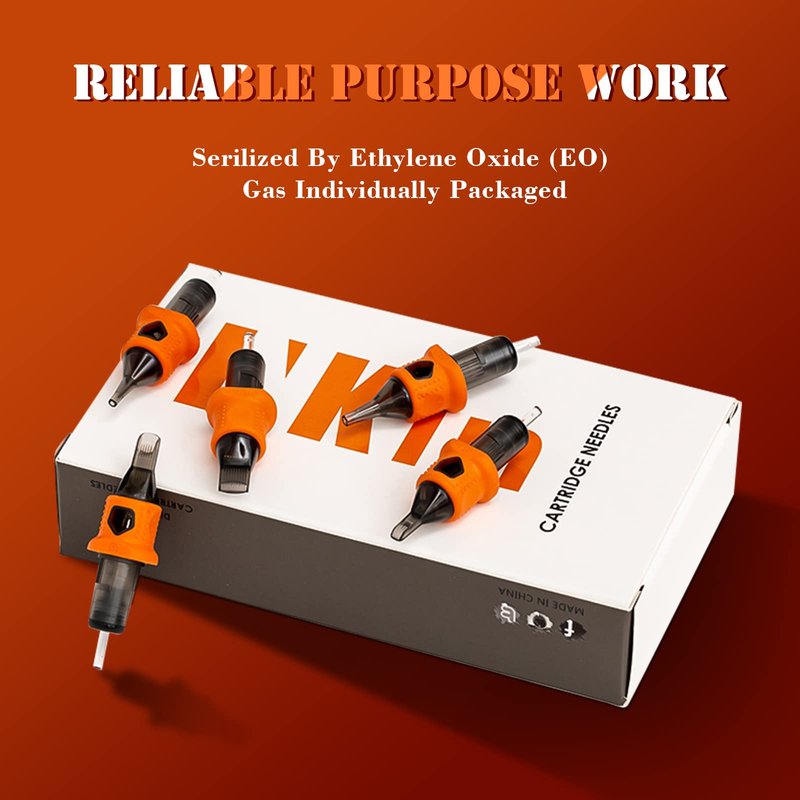 - INKin Tattoo Round Liner Needles used medical grade plastic tips, Needles made of surgical stainless steel, 100% EO Gas Sterilized and Individually packaged.