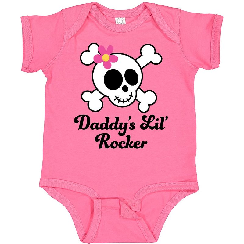 Daddy's Little Rocker Baby Bodysuit has cute girl skull design.