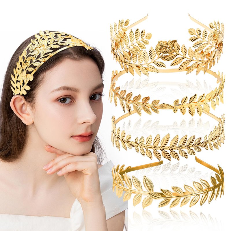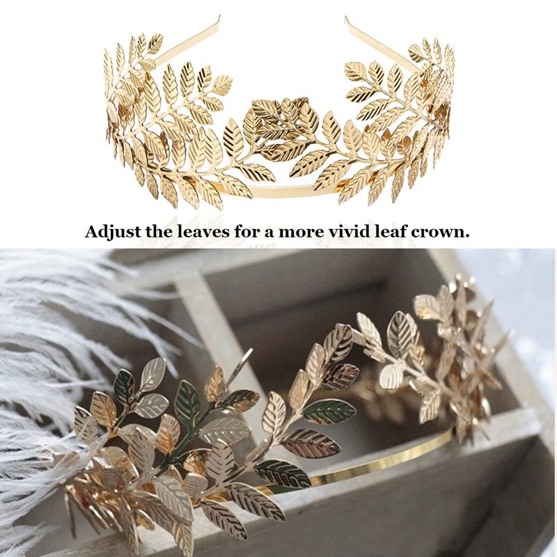- - 5 DIFFERENT STYLES - Pieces of golden bay leaf branches are designed into various shapes of ancient Greek goddess Roman style hair accessories in 5 different styles, solemn and delicate