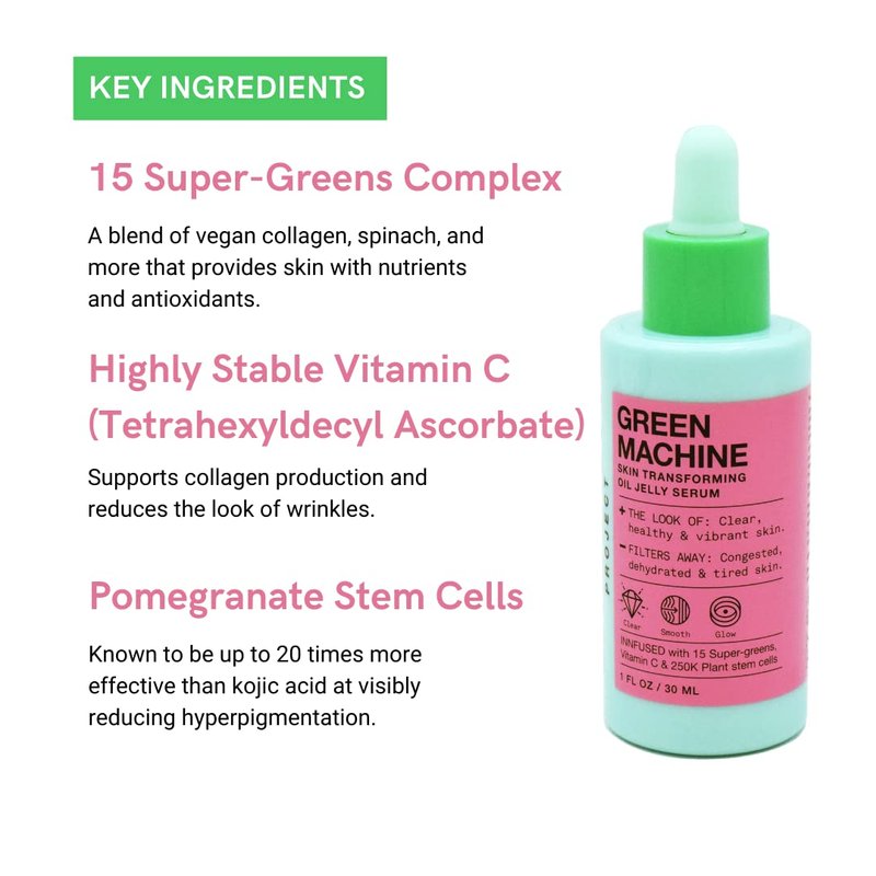 - SKIN VITAMIN: Think of Green machine as your topical liquid skin vitamin to help fully achieve the appearance of brighter, firmer, smoother-looking skin.