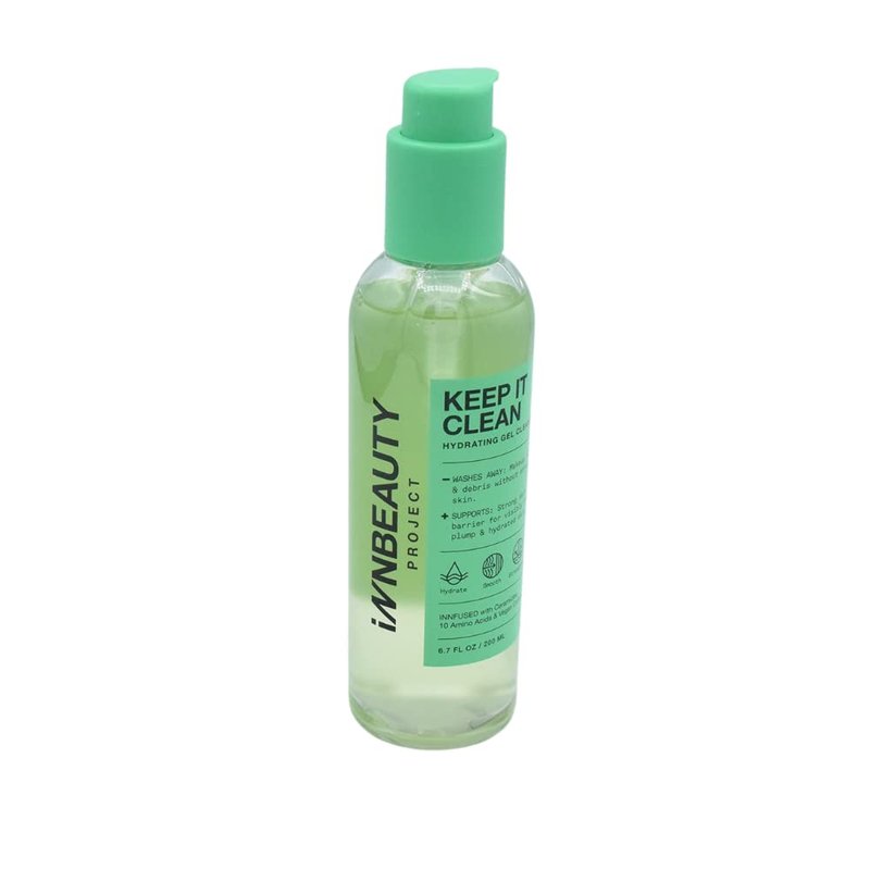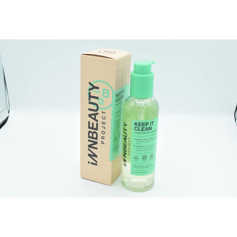 Innbeauty Project KEEP IT CLEAN Hydrating Gel Cleanser 6.7 fl. oz A hydrating and softening gel cleanser that removes makeup, dirt, and excess oil without stripping the skin. Amino acids, ceramides, and vegan collagen soften and hydrate. Key Ingredients: 10 Amino Acid Blend: Helps maintain skin hydration, resilience, and overall healthy appearance. Ceramides: Help strengthen skin's natural moisture barrier. Vegan Collagen: Hydrates and visibly smooth skin. How To Use: 2 ways to cleanse To remove makeup: Apply 3-5 pumps onto dry face using dry hands. Massage into the face concentrating on areas with hard-to-remove makeup. Add water and continue to massage off as you rinse with warm water. For regular cleansing: Apply to wet skin. Massage thoroughly and rinse with warm water.