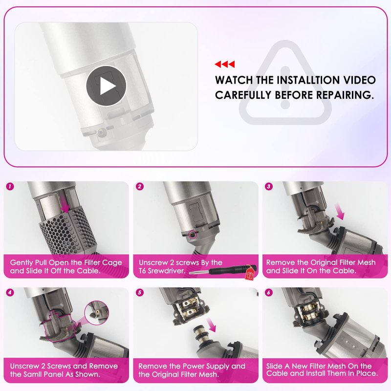 - [Compatible Models] This is the hair styler inner filter replacement, compatible with Dyson Airwrap hair styler HS01 HS05 models. According to the video operation, you can easily replace the old inner filter