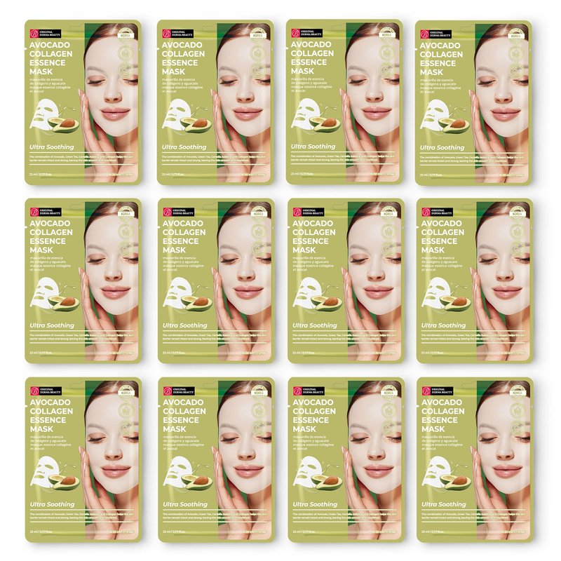 Innerest Original Derma Beauty Collagen Face Masks Skincare -12 PK Ultra Soothing Avocado Face Mask Skin Care Sheet masks Set for Beauty & Personal Care Korean Face Mask