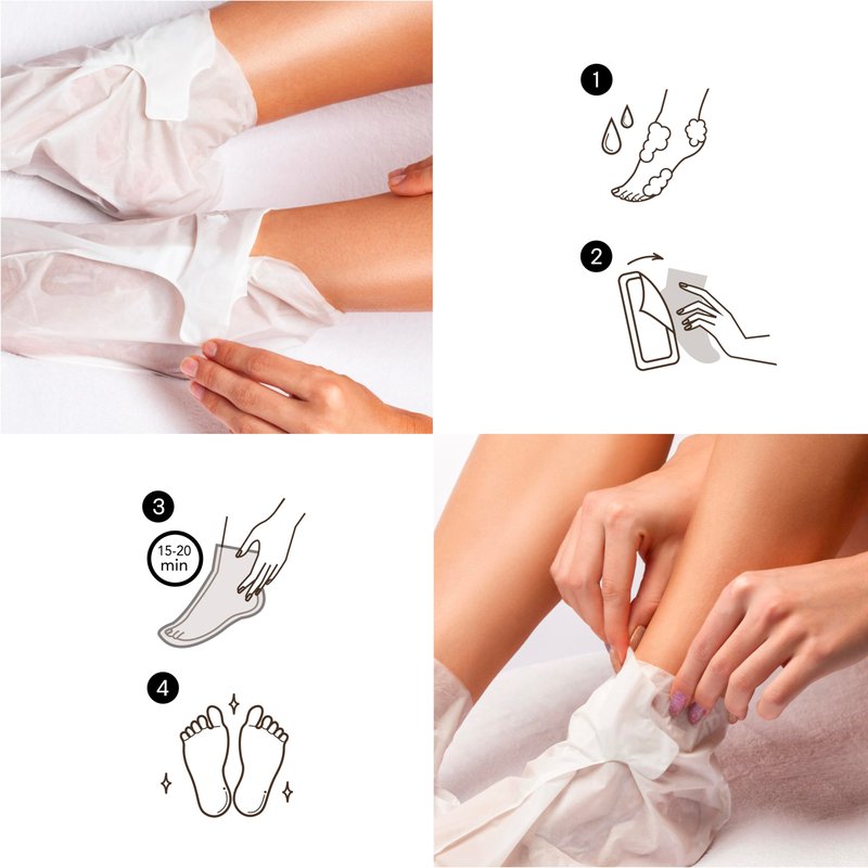 This Moisture-Boosting Shea Butter foot mask revitalizes dry, rough feet and makes them soft and smooth. With nutrient-rich ingredients like Shea Butter, Coconut, and Sunflower Seed Oil, your feet will get the care they deserve.