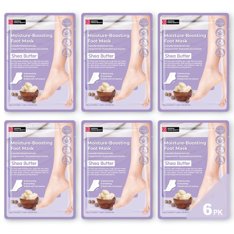 - This Moisture-Boosting Shea Butter foot mask revitalizes dry, rough feet and makes them soft and smooth.
