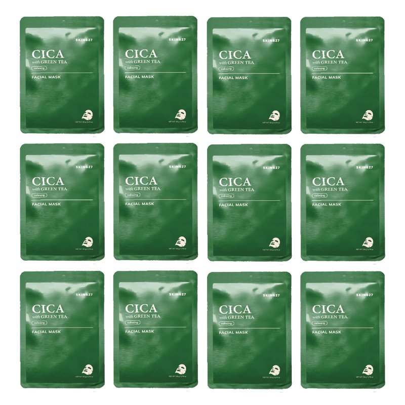 Innerest SKIN627 Bulk 12PK Face Masks Skincare, Korean Skincare, Facial Mask, Sheet Masks Korean (12PK Cica with Green Tea)