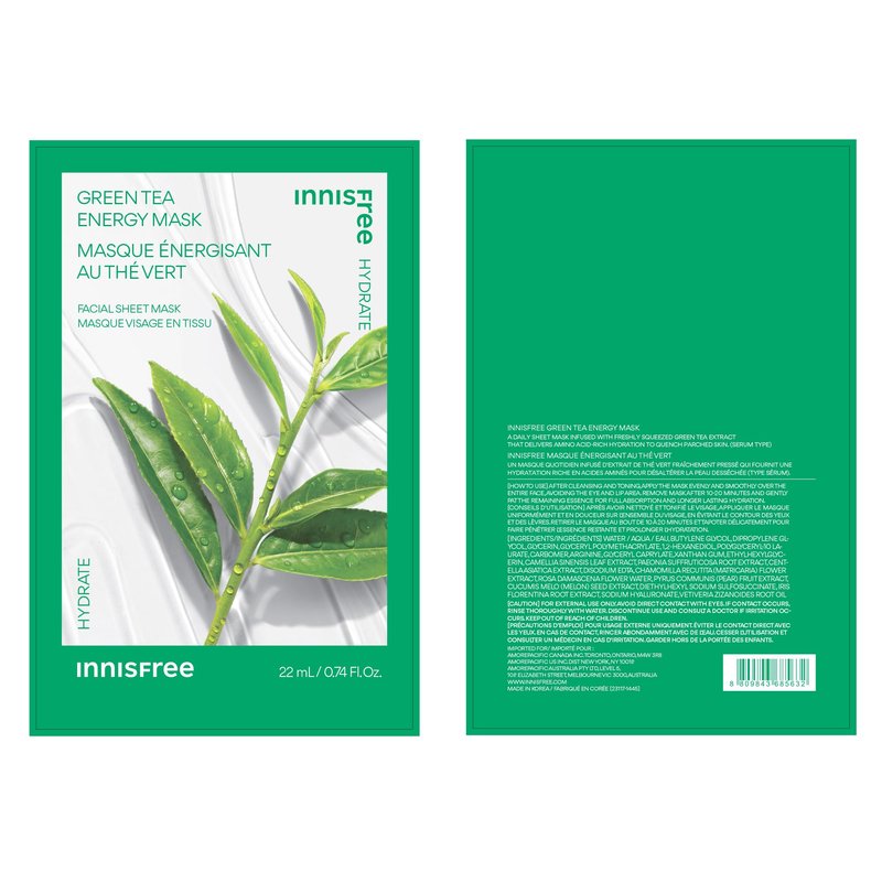 innisfree Green Tea Energy Mask, Hydrating Serum Korean Sheet Mask, Face Mask for Bright, Glowing Skin