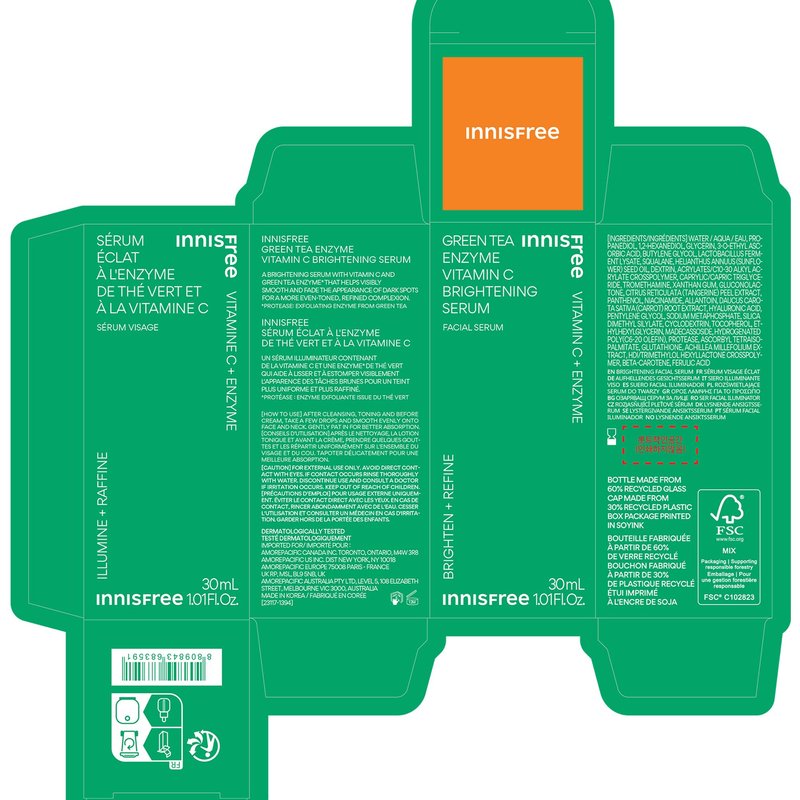 innisfree Green Tea Enzyme Vitamin C Brightening Serum for Dark Spot Fading, Korean Face Serum for Glow