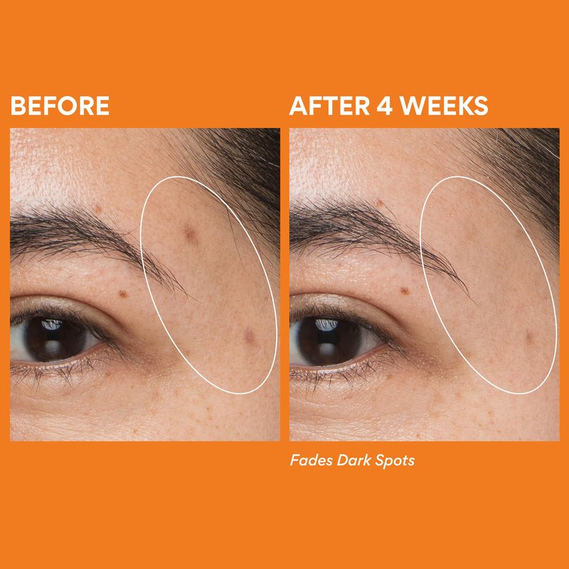 - A brightening serum with Vitamin C and enzymes from Green Tea that helps visibly smooth and fade dark spots for a more even-toned, refined complexion.