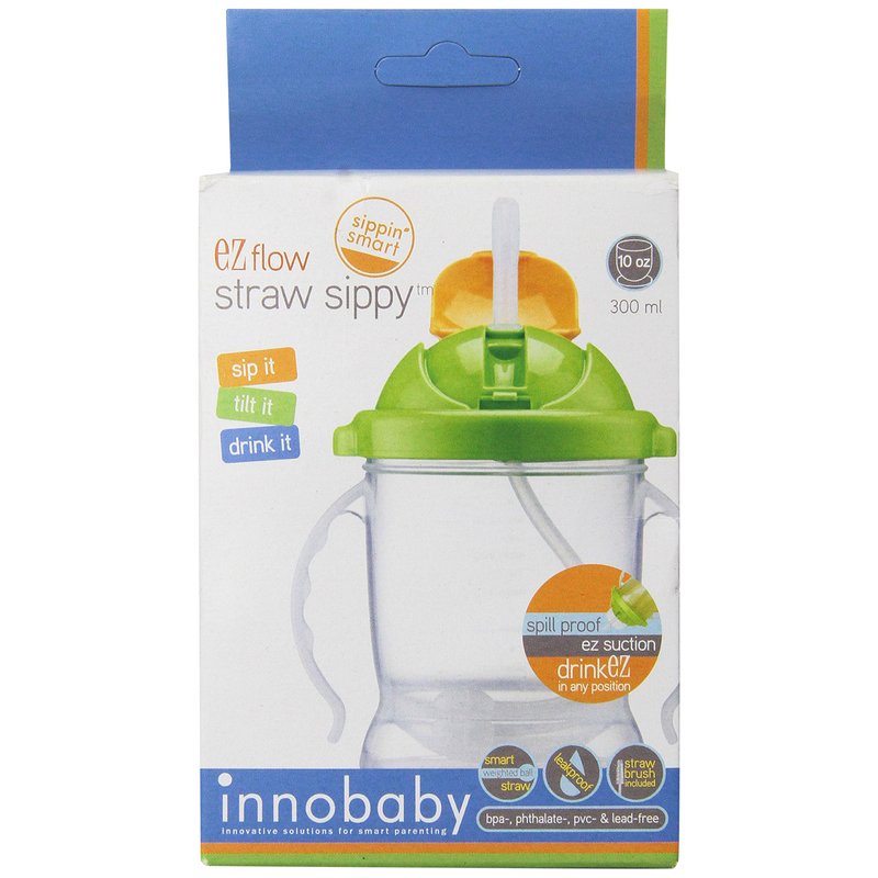 Innobaby Sippin' Smart EZ Flow Straw Sippy Cup, Green, 10 Ounce