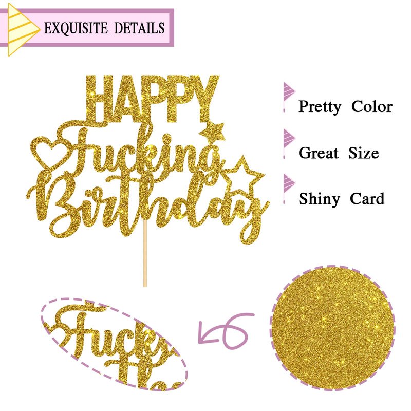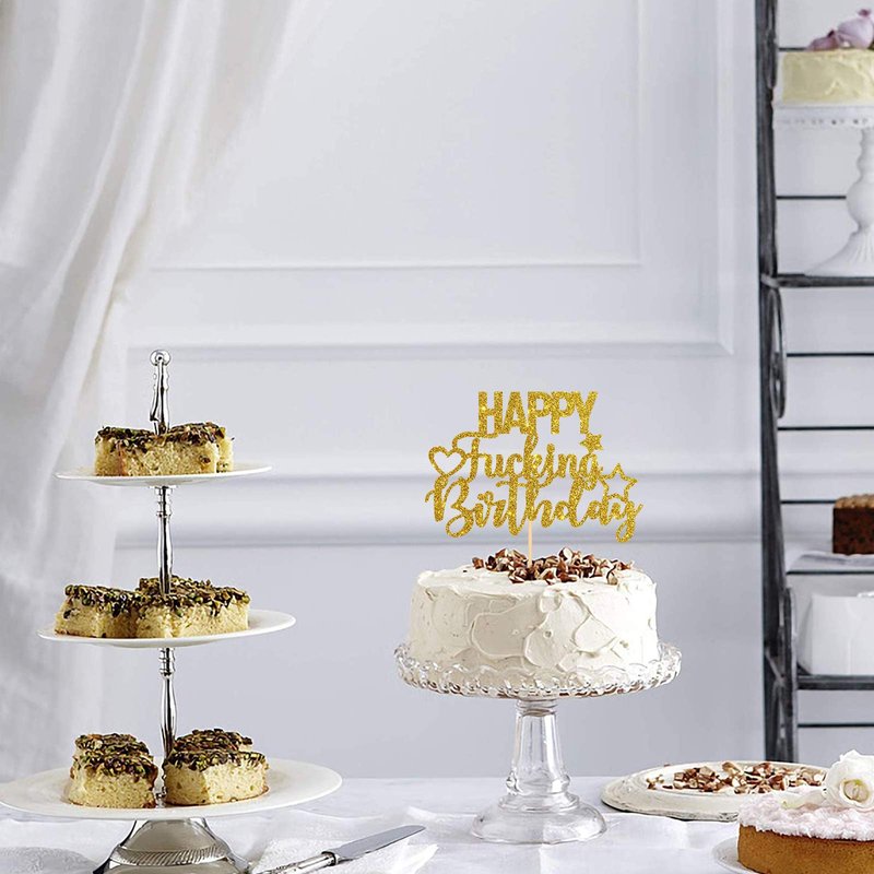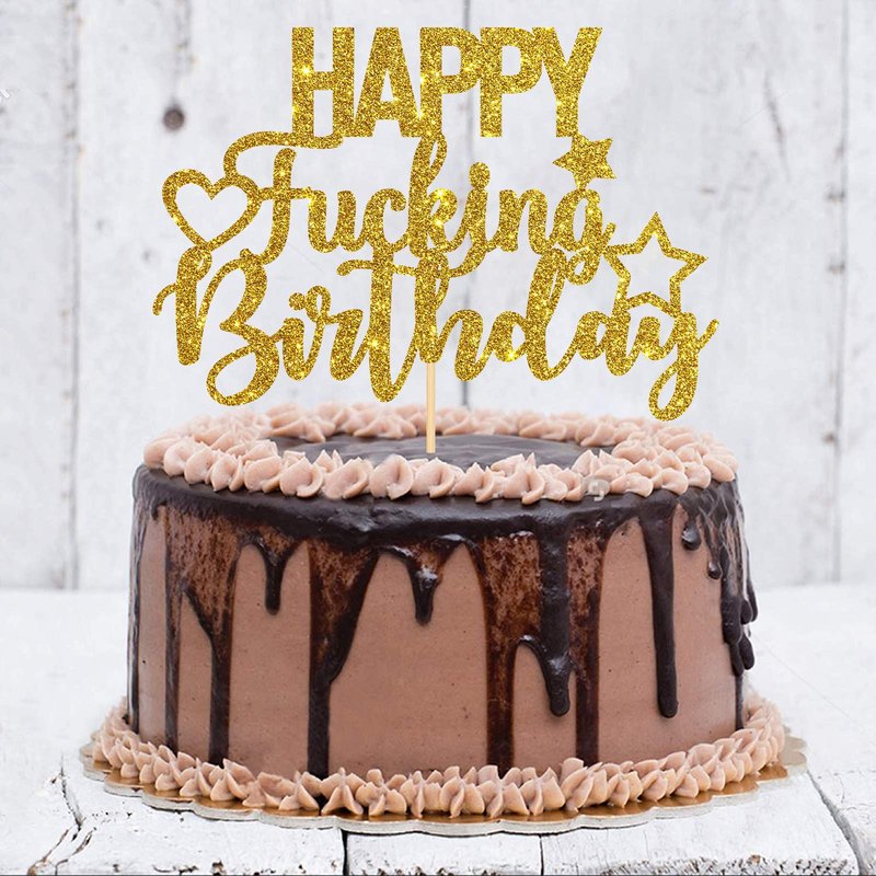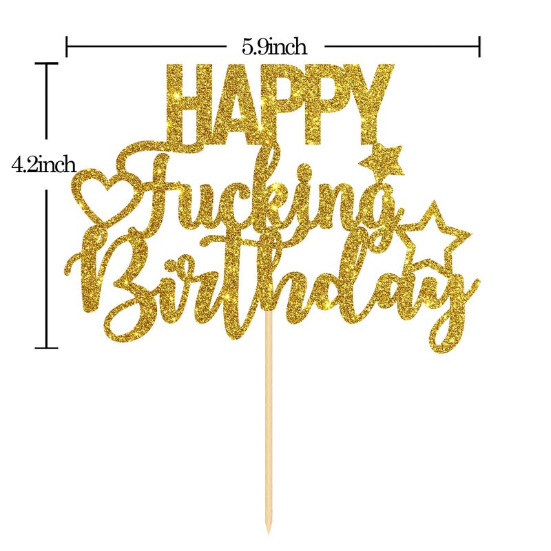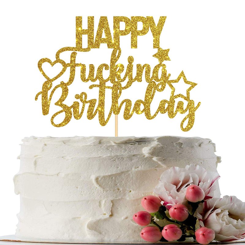 INNORU Gold Glitter Happy Fucking Birthday Cake Topper for Funny Birthday Party - Anniversary Party Cake Decorations