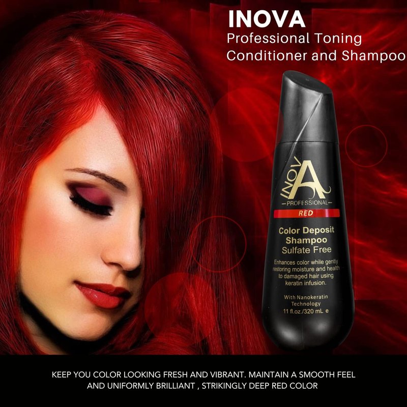 Inova Professional Color Revive & Enhance - Smooth Protection Sulfate-Free Shampoo - Color Deposit Red, 11 Fluid Ounce