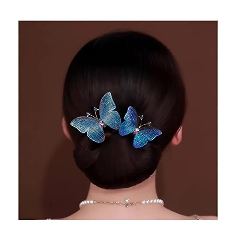 Ins Style Elegant Lazy Hair Curler, Crystal Hair Bun Maker, French Twist Hairstyle Bun Hair Accessories (Blue Butterfly)
