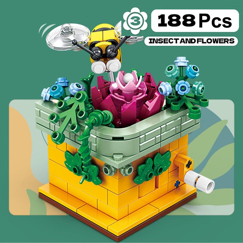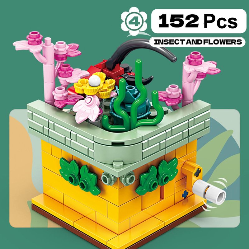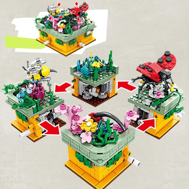 - 【Mechanical linkage function】4-in-1 combination upgrade, children can build a device with mechanical linkage. When manually operating a certain handle, insects and flowers will twist, increasing the interactivity and fun of the toy.