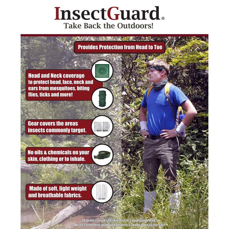 - InsectGuard products come pretreated with a powerful microencapsulated permethrin insect repellent for protection from disease-spreading ticks (Lyme disease) and mosquitoes (West Nile and Zika viruses) Registered to repel mosquitoes, ticks, ants, flies, chiggers and/or midges. The treatment process provides a KNOCKDEAD effect for insects when they come in contact with it and provides effective, odorless insect protection Registered to last to 50 washes.