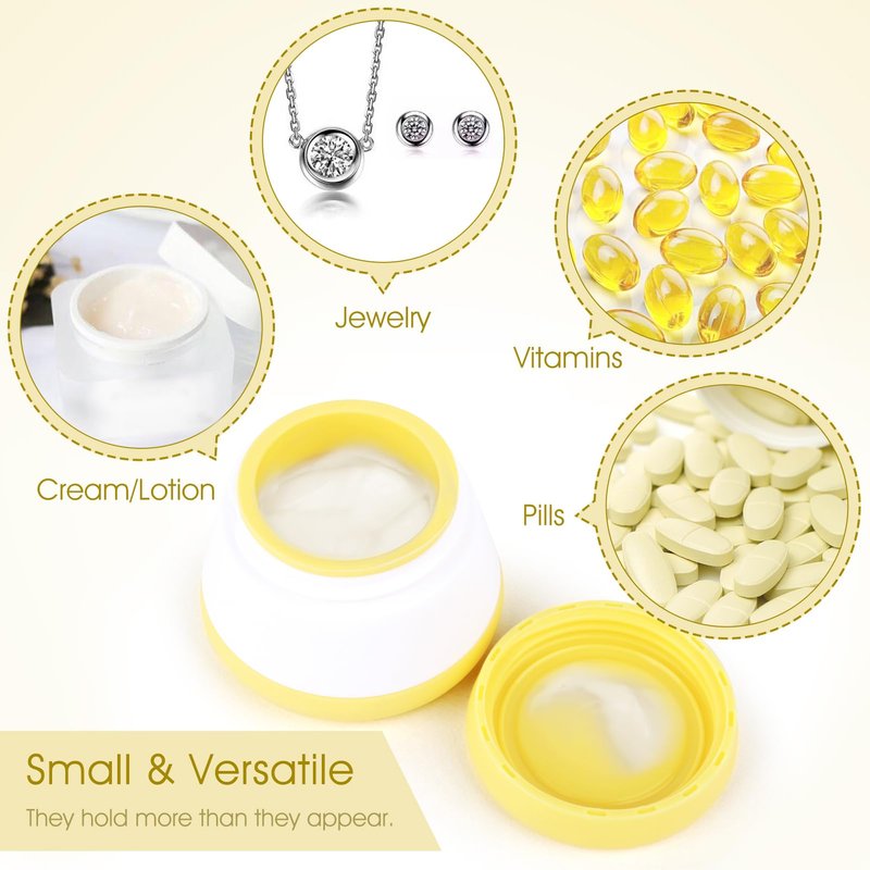 - BPA Free Food Grade Silicone+PP: Our 4 pack silicone pot jars are perfect for face cream, hair cream, pills, vitamins, jewelry, rings, sample vials, kids diaper cream, diaper ointment etc.