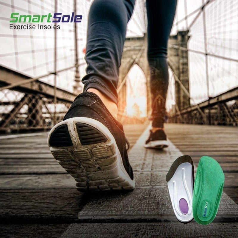 - Exercise Smarter - SmartSole Exercise Insoles for plantar fasciitis relief features arch support and a deep heel cup with a medical-grade gel cushion. Anti-fatigue cushioning provides heel pain relief, and maximum comfort for your feet, legs & lower back.