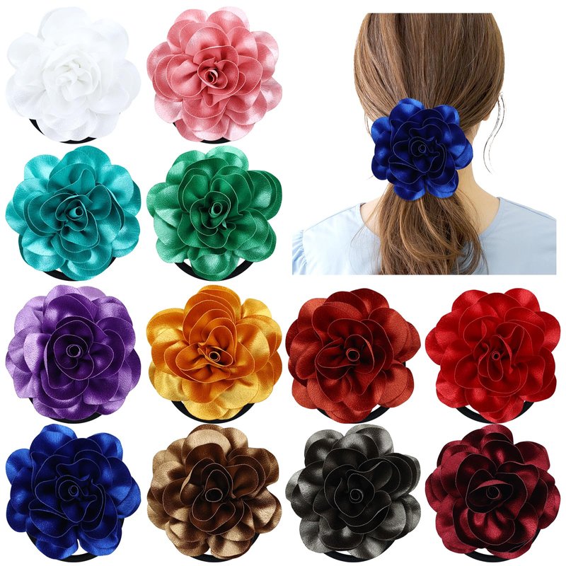 - inSowni 12 Pieces 10cm/4" Big Flower Hair Ties Scrunchies Elastics Ponytail Holders Rubber Bands Hair Ropes Accessories for Women Girls