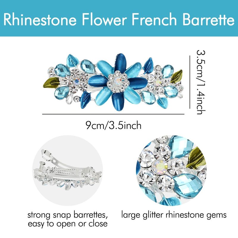 - Occasions: These exquistite rhinestone french barrettes are perfect for you to wear on various occasions such as birthday party, wedding, prom, engagement, photo shoot, daily life and so on. They are also great gifts to your friends. What You Get: 4pcs flower french barrettes like photo show in the good package.