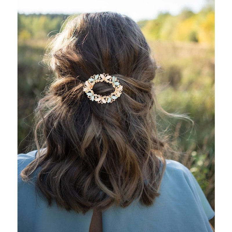 - Color: Gold metal barrettes with 4 different colors of crystals on the top including teal, purple, pink and ivory. Different colors offer a variety of choices for you to match your outfits.