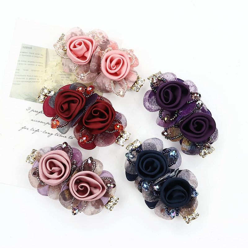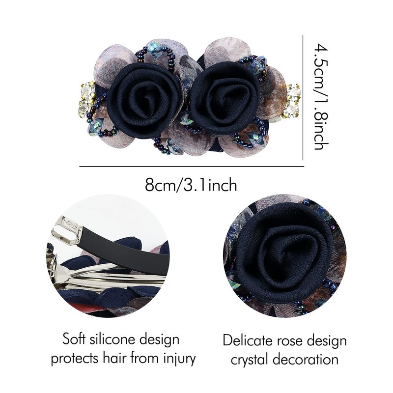 - Material: Each flower french barrette is made from high quality alloy with satin roses and plastic beads on the top for decoration under fine workmanship. Excellent materials make these flower french barrettes more exquisite, pretty, unique and fancy.