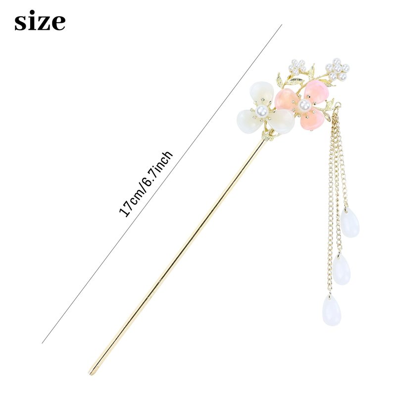 - Traditional Elegance: Embodying the beauty of Chinese culture, these hair sticks are reminiscent of the traditional Hanfu era. The combination of elements like pearl pendants and ornate flowers pays homage to the classic Chinese aesthetic. These vintage-inspired hair pins are perfect for special occasions, cultural events, weddings, or even as a statement piece in your everyday hair routine. Let these hair sticks be a reflection of your elegance and appreciation for history.