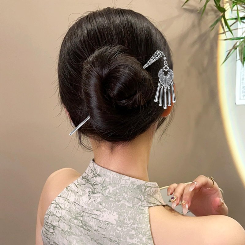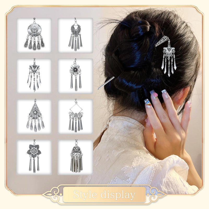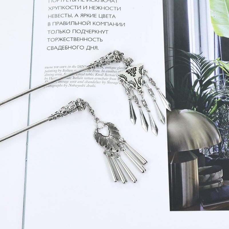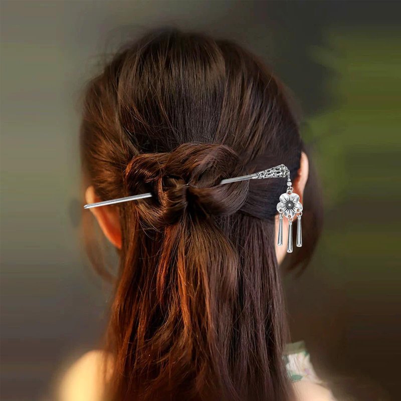 - Material: Crafted from high-quality silver metal, these vintage hair sticks boast durability and an exquisite finish. The intricately adorned pendants, including flowers, leaves, and tassels, add an elegant touch to the hair accessory. The use of premium metal ensures a polished and timeless appeal, making them suitable for various occasions and hairstyles.