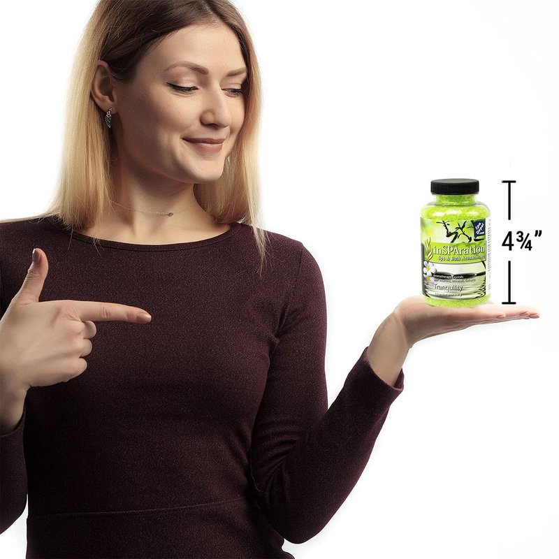 The finest aromatherapy crystals for hot tub spas and jetted whirlpool baths. Our unique and delightful inSPAration scents are crafted for total hot water enjoyment, creating a rich, soothing spa experience. The amazingly pleasurable fragrances promote total relaxation, while leaving your skin feeling soft and moisturized. Freedom from chemical odors! Net wt.: 13 oz. (368 g.)
