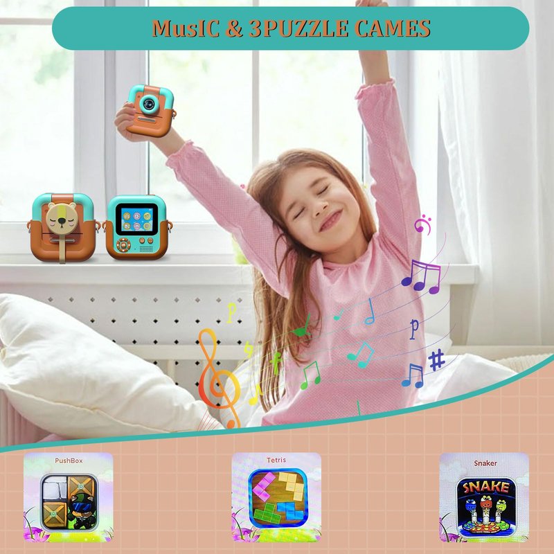 - 【Multifunctional Childrens Toy】 - Child camera instant print combines high-definition shooting and instant printing functions, including 10x zoom, flash, time-lapse photography, continuous shooting, educational games, MP3, etc. It is also equipped with a 2.4-inch professional eye-protection high-definition screen, which meets children's age 3-8 diverse entertainment and creative needs while ensuring the safety of children's eyesight.