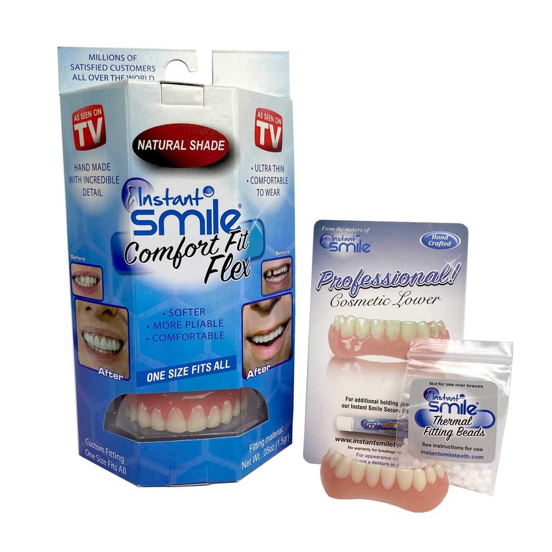 Instant Smile Comfort Fit Flex Teeth - Upper and Lower Matching Set, Natural Shade! Fix Your Smile at Home Within Minutes!