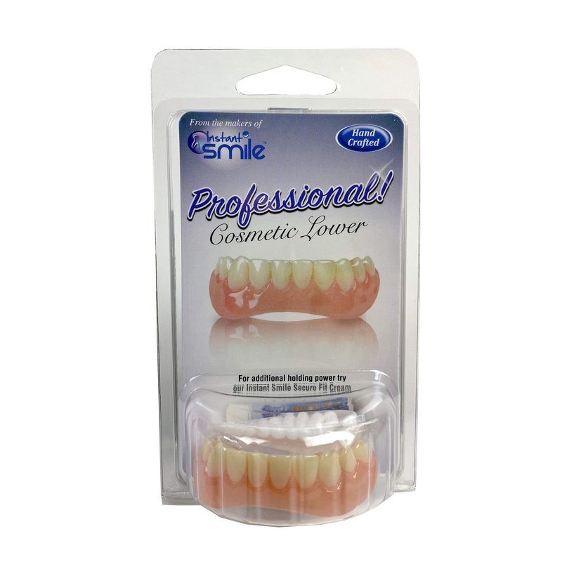 We are happy to release the most recent addition to our Instant Smile family. Our Professional Cosmetic Lower is our most realistic and natural looking set of lower teeth to date. These are hand crafted and have a high gloss finish. The gum coloring is a healthy light pink and the teeth are a natural white, but not too white. The custom fitting process allows you to fit the teeth just how you like them. The Professional Cosmetic Lower will cover up missing, broken, crooked or stained teeth! Great for family photos, weddings, or any other event where you want to have a great smile! For over 10 years we have been giving people the confidence to smile again! Millions of satisfied customers all over the world. The product is designed to fit most sized mouths. If you do not get a fit that you are happy with, you can reheat the fitting material and refit them as many times as you need to get a fit you are happy with. Although the teeth may look small in the packaging, customers typically find they are normal size once they fit them.