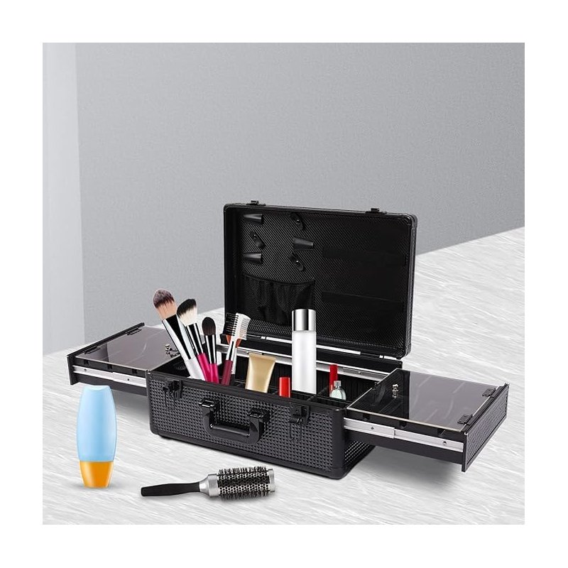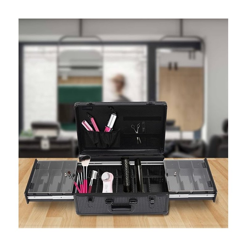 - 【Large Capacity】This barber case concludes two blade/guard caddies for your scissors and other sharp objects, an interior tray for combs. In addition, there is a drawer on each side of the case, and there are many compartments at the bottom. Such a large capacity allows you to store many items and also facilitates you to classify items.