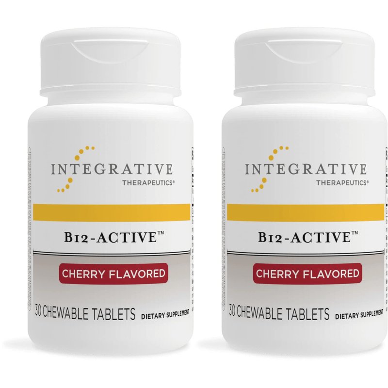 Integrative Therapeutics B-12 Active, Vitamin B12, Supports Nerve Function*, Cherry Flavored, 30 Chewable Tablets - 2 Pack