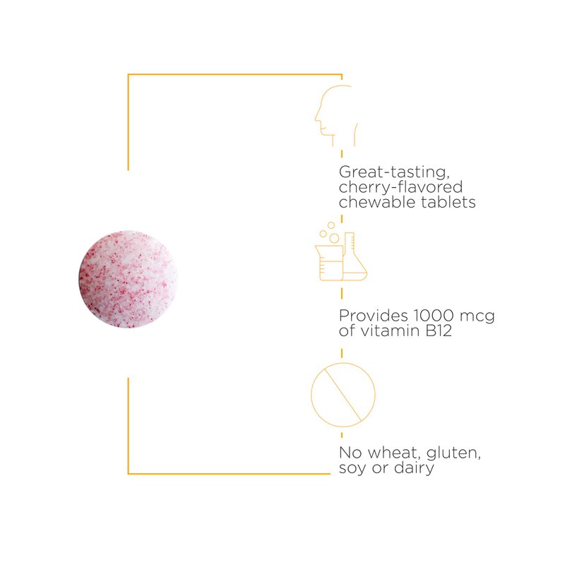 Integrative Therapeutics B-12 Active provides methylcobalamin in a fast-absorbing chewable tablet. Methylcobalamin is the active form of vitamin B12 and does not require conversion in the body. Several studies have shown that vitamin B12 levels decline with age. Vitamin B12 from food sources is also harder to absorb after age 50. B-12 Active provides 1000 mcg of vitamin B12 (as methylcobalamin) per chewable tablet. These great-tasting cherry-flavored chewable tablets are ideal for those following vegan, vegetarian, or other special diets.
