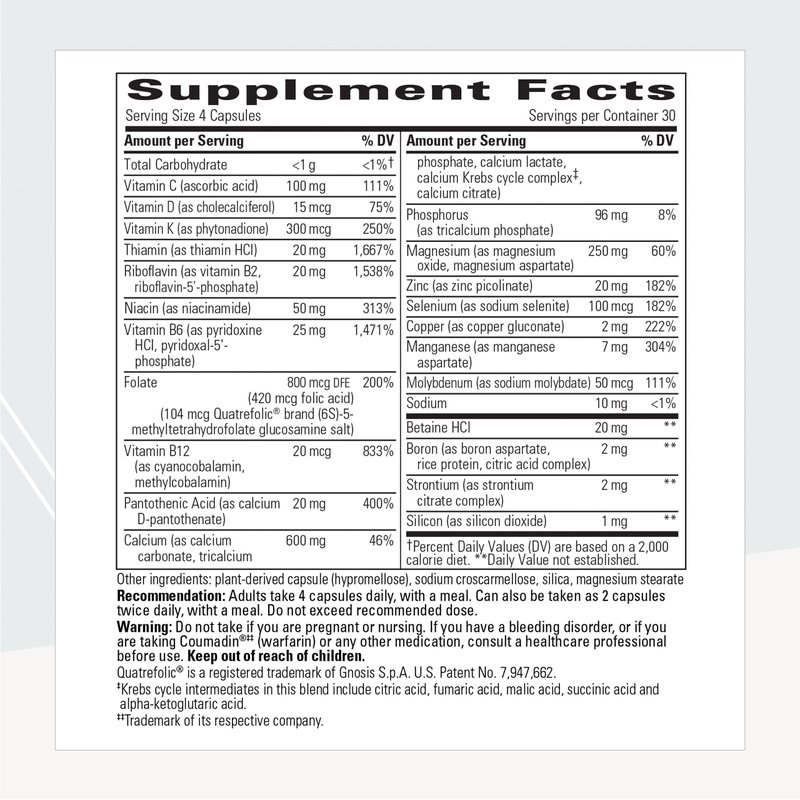 - Bone Support Supplement*: This bone formula contains vitamin C, vitamin D, magnesium, zinc, vitamin B12, calcium citrate, and vitamin B6