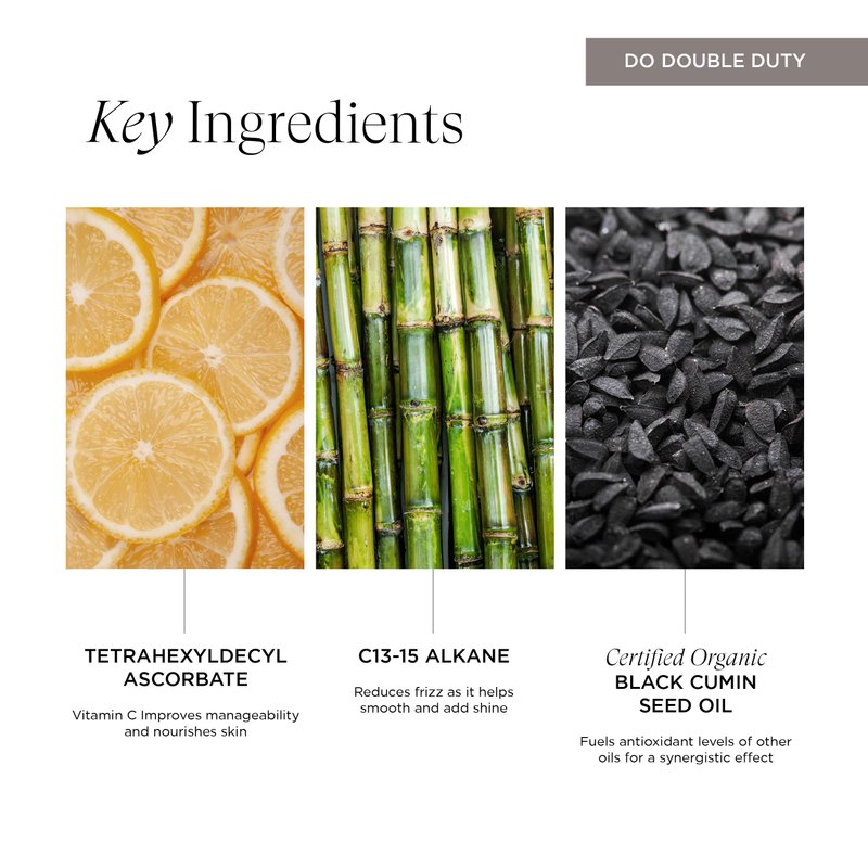 - Radiant Shine: Infuses hair with vegan Vitamin C and sugar cane alkanes, adding luminous shine and health