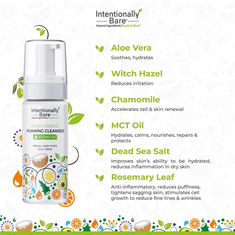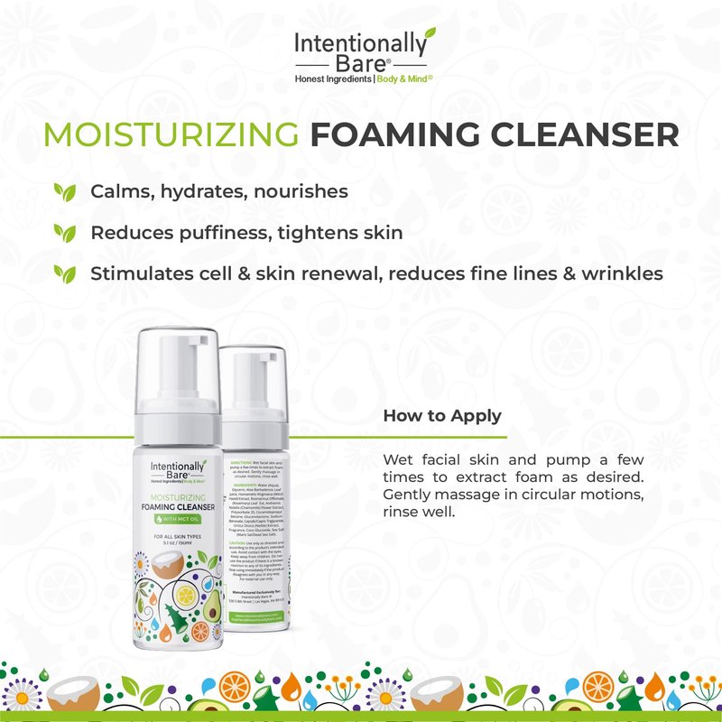 Intentionally Bare Foaming Face Wash with MCT Oil - Anti-Aging Hydrating Cleanser for All Skin Types - Gentle Daily Facial Wash