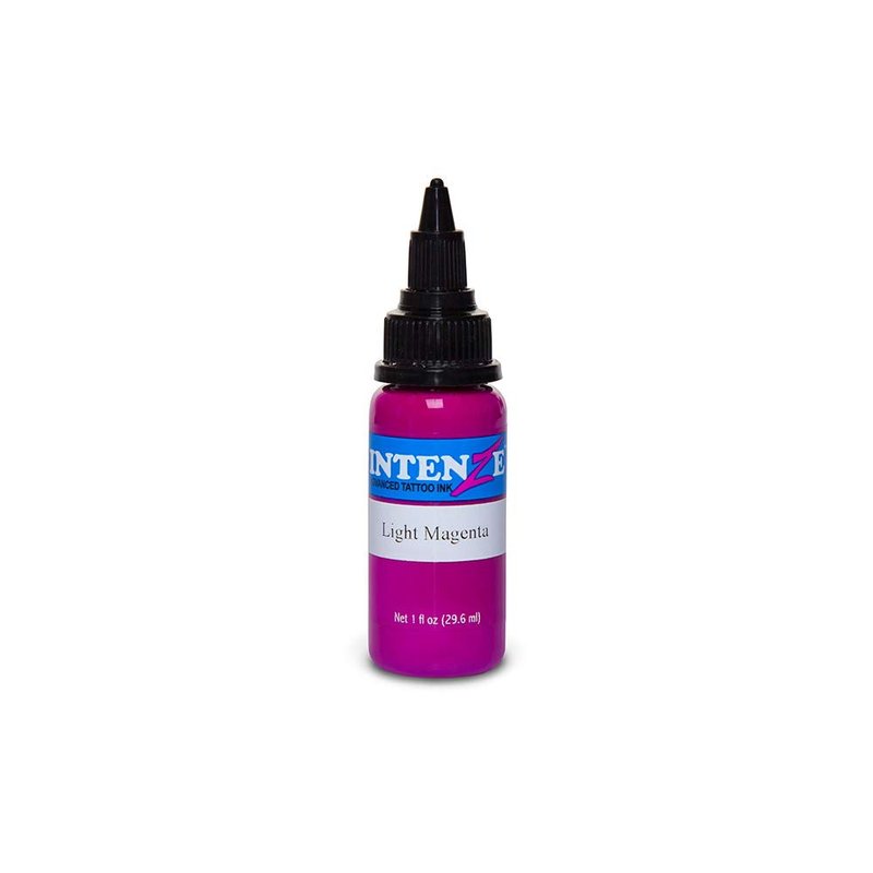 Intenze Light Magenta Tattoo Ink is the perfect color to help create beautiful sunsets or fantasy tattoos. It is also extremely important for animal portrait tattoos. When healed, it adds a slight touch of white to the skin.