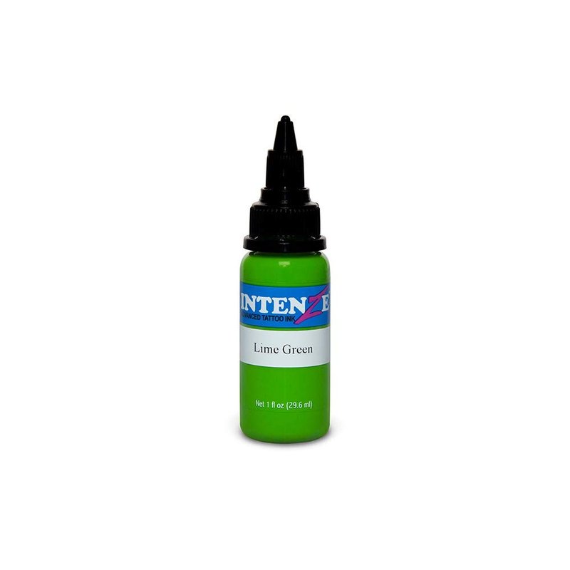 Intenze Lime Green Tattoo Ink heals with a yellow shine and is as bitter as lime. It is a unique tattoo ink color that will provide a broad range of greens and expand your creativity as an artist.