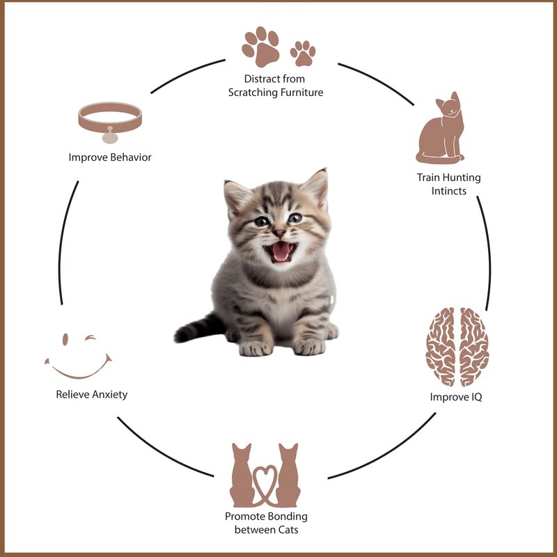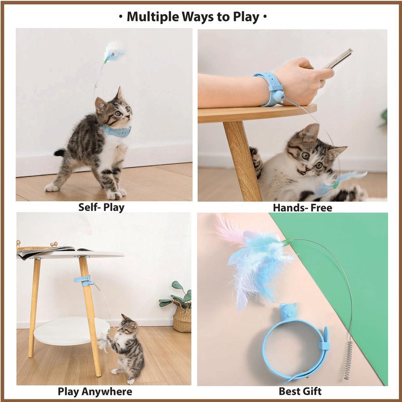 - 😸 Multiple Play Options: Use this versatile cat collar toy in various ways wear it, secure it to furniture, or wrap it around your hand! Perfect for transforming your home into an interactive self playing cat toy area.