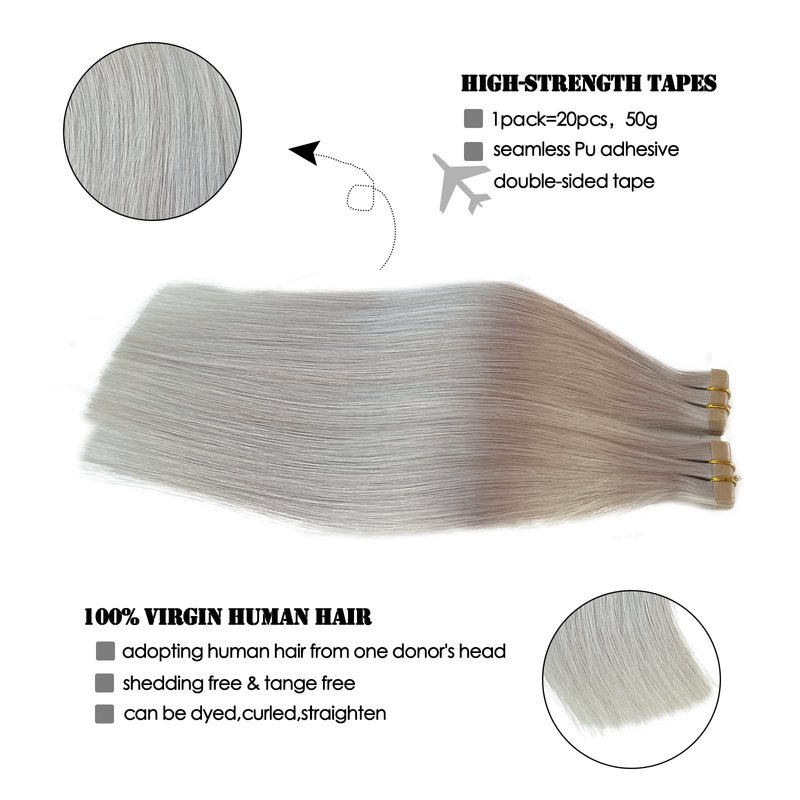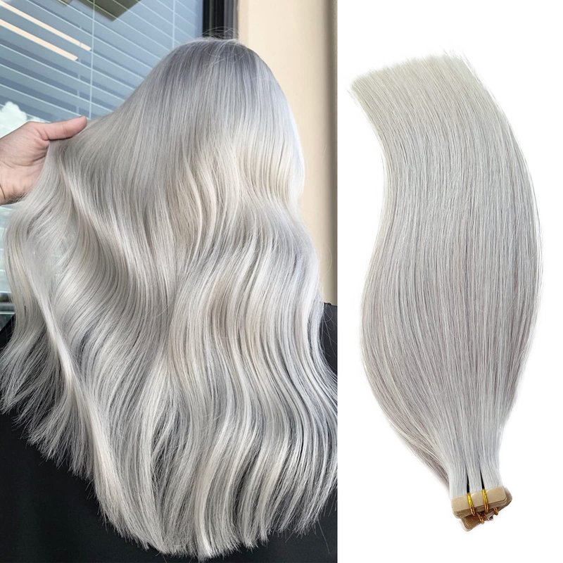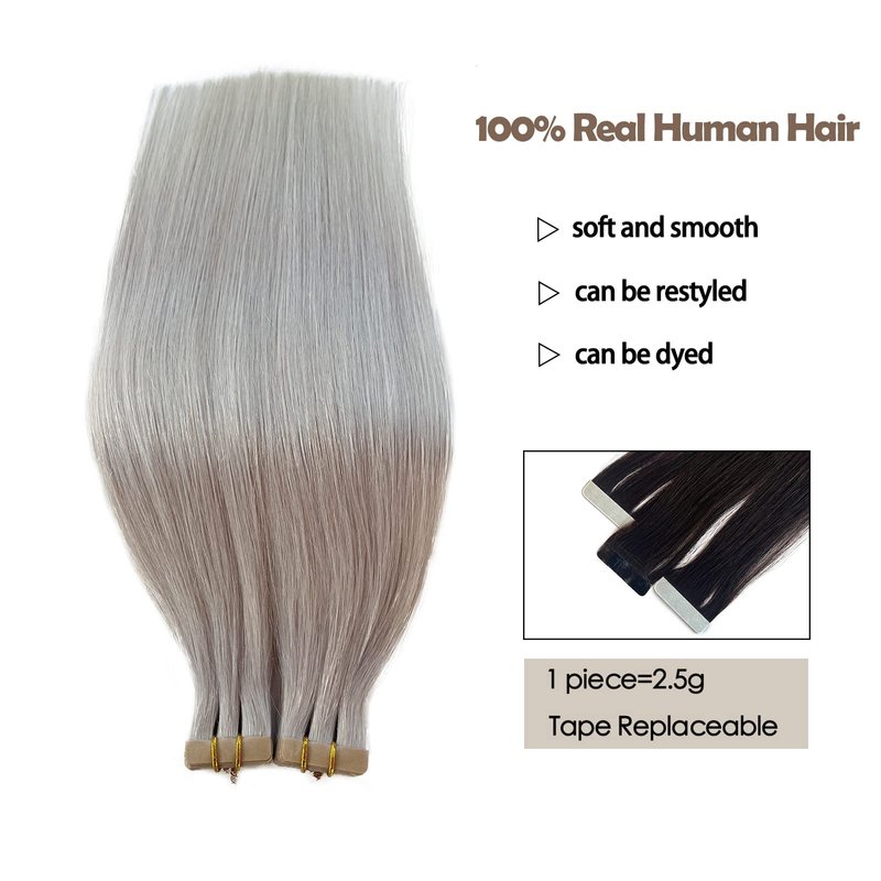 Invisible Tape in Hair Extensions 22 Inch Platinum Silver Remy Human Hair Tape in Extensions Light Silver Seamless Pu Tape in Hair Extensions for Women 50g/20pcs