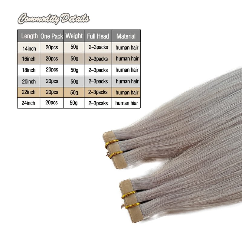 - 【High-Strength Tapes & Easy to Take Out】-- Specially developed high-strength invisible tape. You can refer to our product page to take out the tapes. Tape in hair extensions specification: , 20 Pieces, weight 30g -70g,14-24inch available. Recommend 2-3 sets for thick full head.